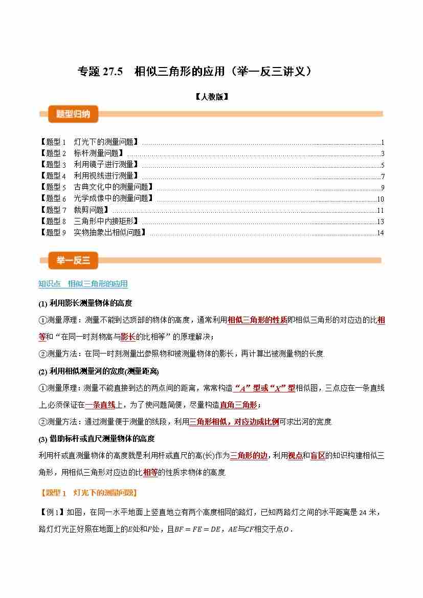 专题27.5 相似三角形的应用(举一反三讲义)(解析版)