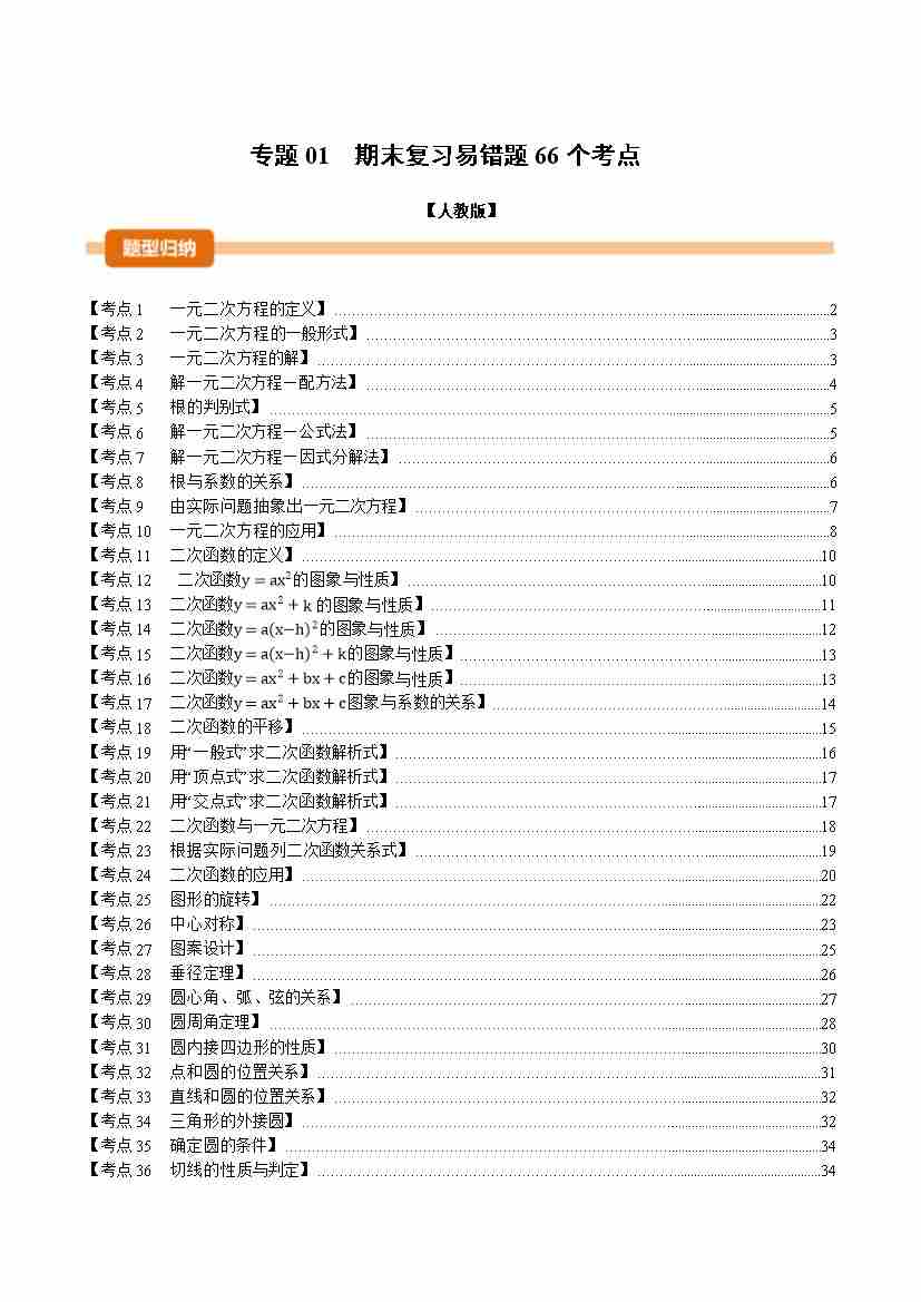 专题01 期末复习易错题66个考点(举一反三期末专项训练)(原卷版)