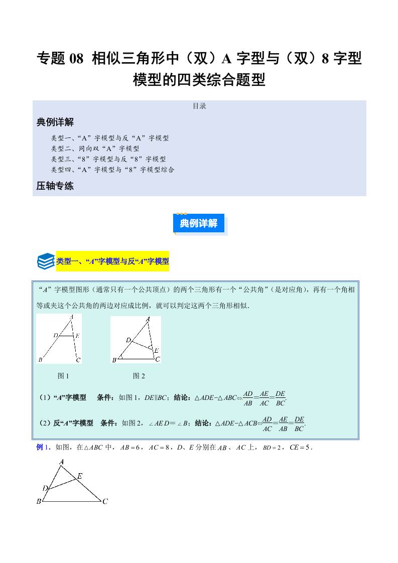 专题08 相似三角形中(双)A字型与(双)8字型模型的四类综合题型(压轴题专项训练)(原卷版)