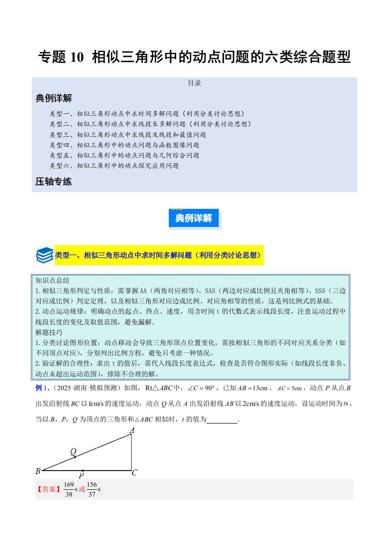 专题10 相似三角形中的动点问题的六类综合题型(压轴题专项训练)(解析版)
