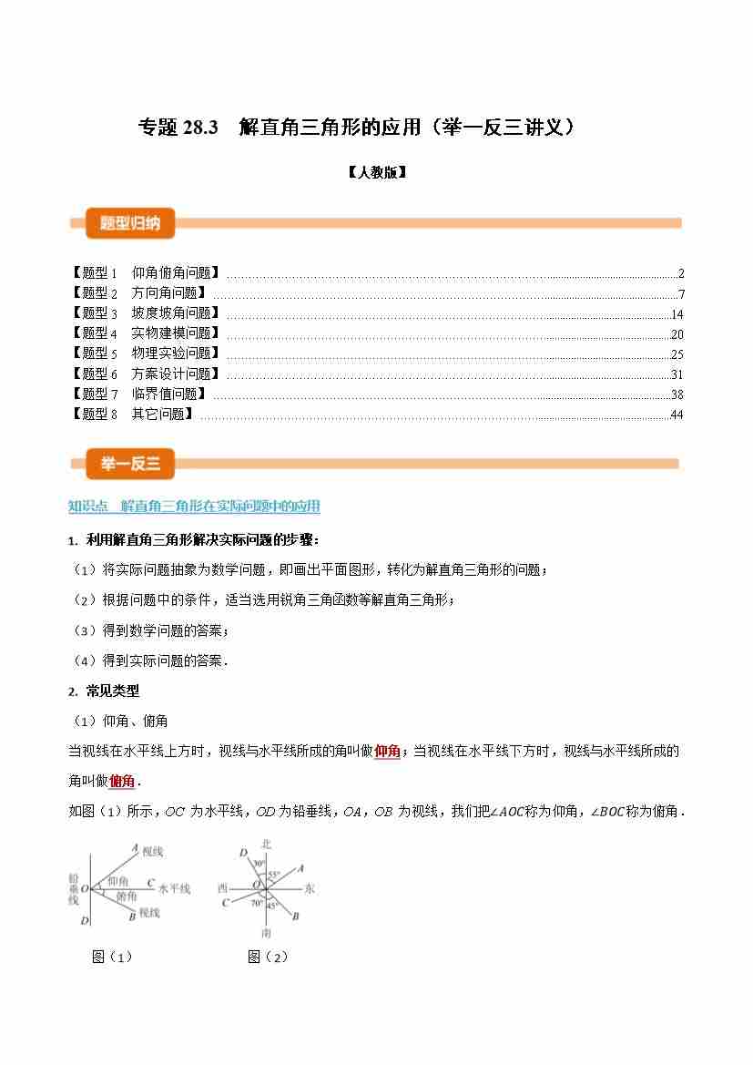 专题28.3 解直角三角形的应用(举一反三讲义)(解析版)