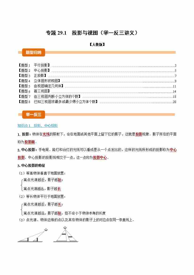 专题29.1 投影与视图(举一反三讲义)(原卷版)