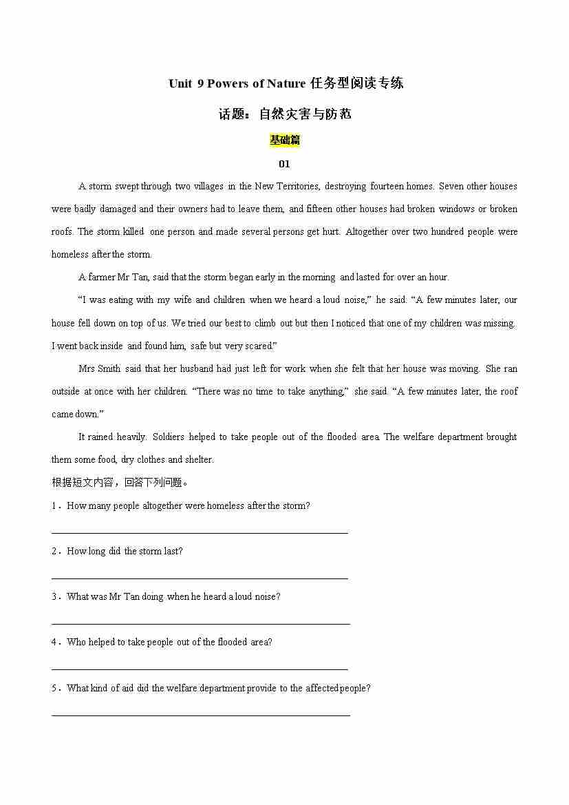 Unit 9 Forces of Nature(任务型阅读专练)(解析版)