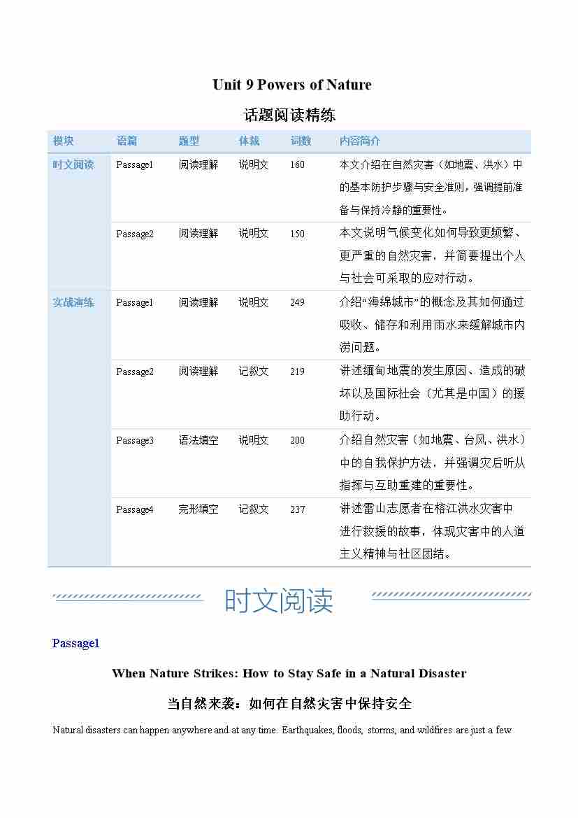 Unit 9 Forces of Nature(话题阅读精练)(原卷版)