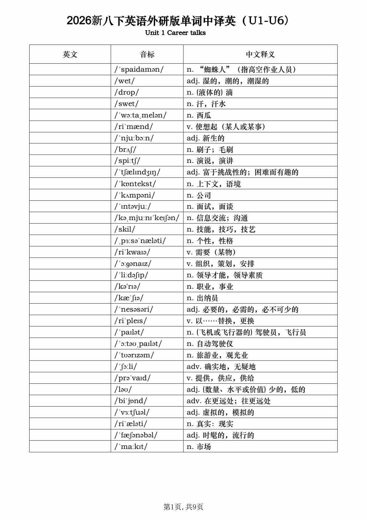 Unit 9 Forces of Nature(重难词汇精练)(原卷版)