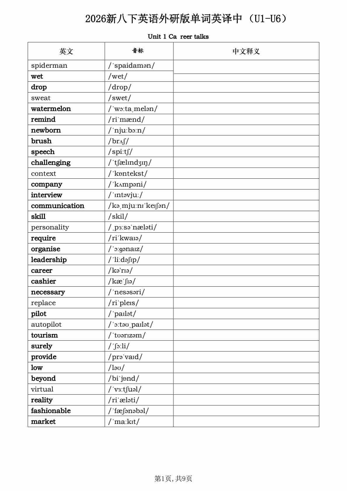 Unit 8 Every Coin Counts!(重难词汇精练)(原卷版)