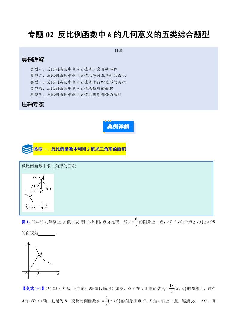 专题02 反比例函数中k的几何意义的五类综合题型(压轴题专项训练)(学生版)