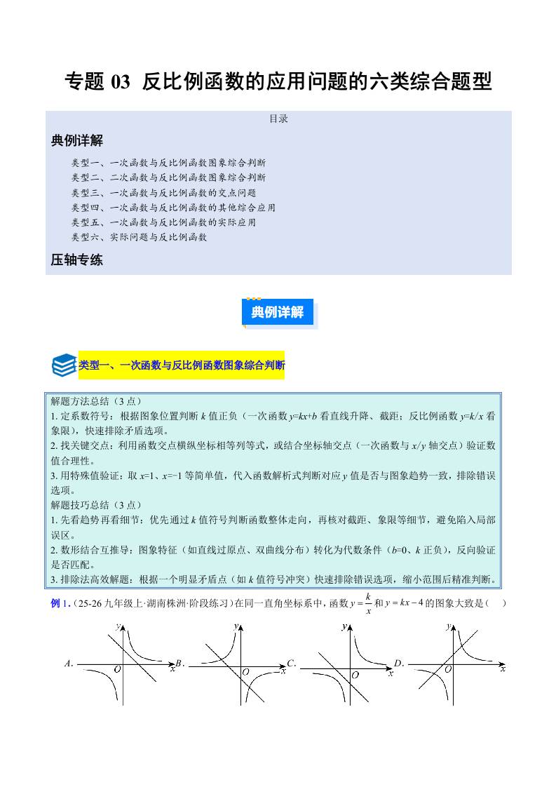 专题03 反比例函数的应用问题的六类综合题型(压轴题专项训练)(学生版)