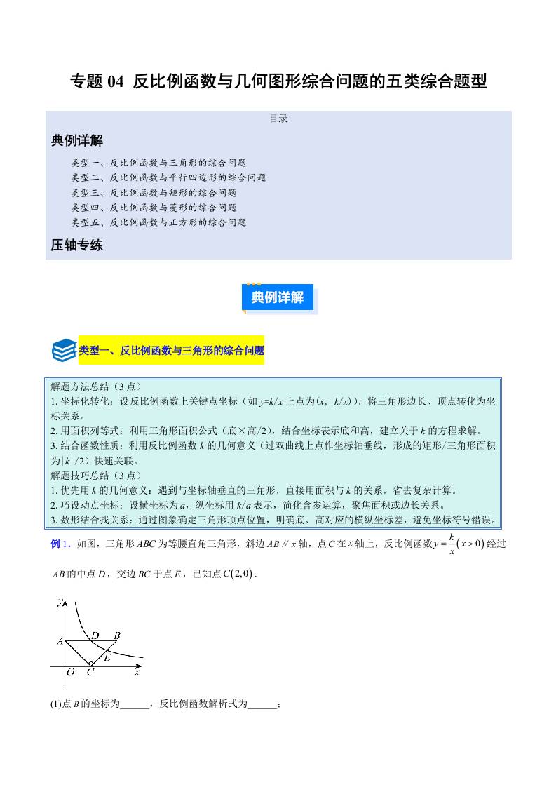 专题04 反比例函数与几何图形综合问题的五类综合题型(压轴题专项训练)(学生版)
