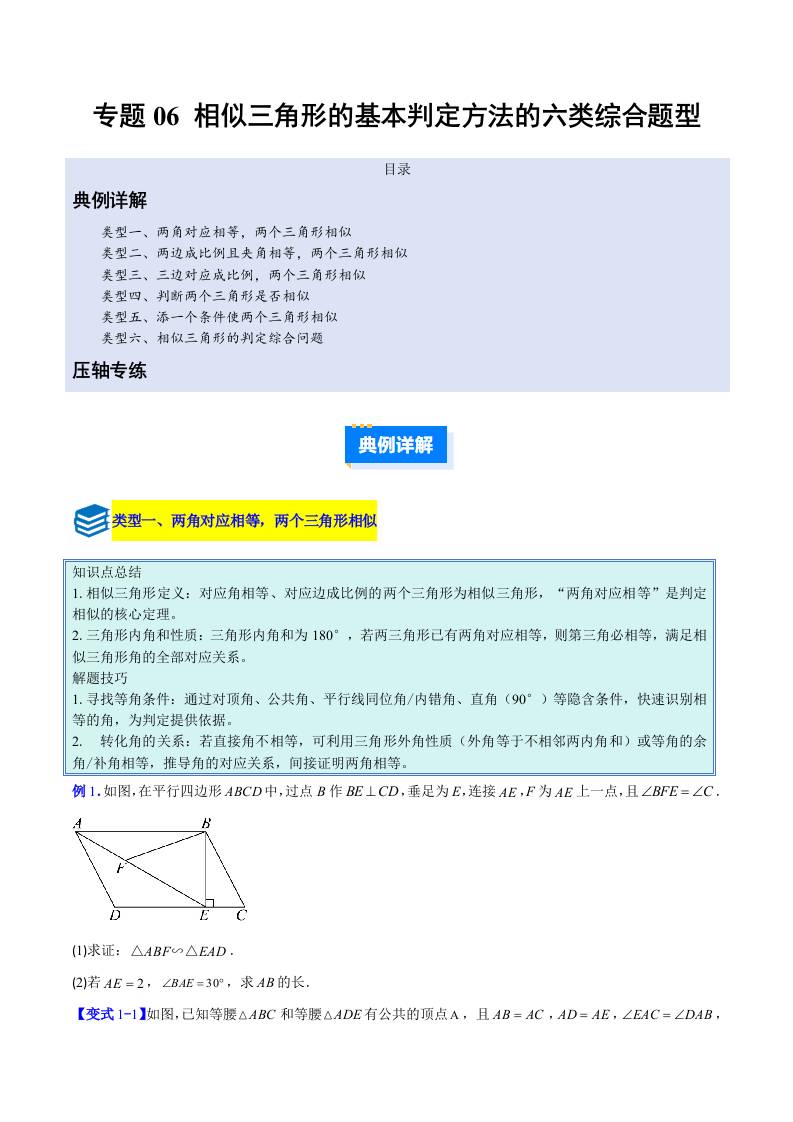 专题06 相似三角形的基本判定方法的六类综合题型(压轴题专项训练)(原卷版)