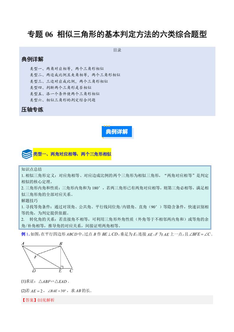 专题06 相似三角形的基本判定方法的六类综合题型(压轴题专项训练)(解析版)