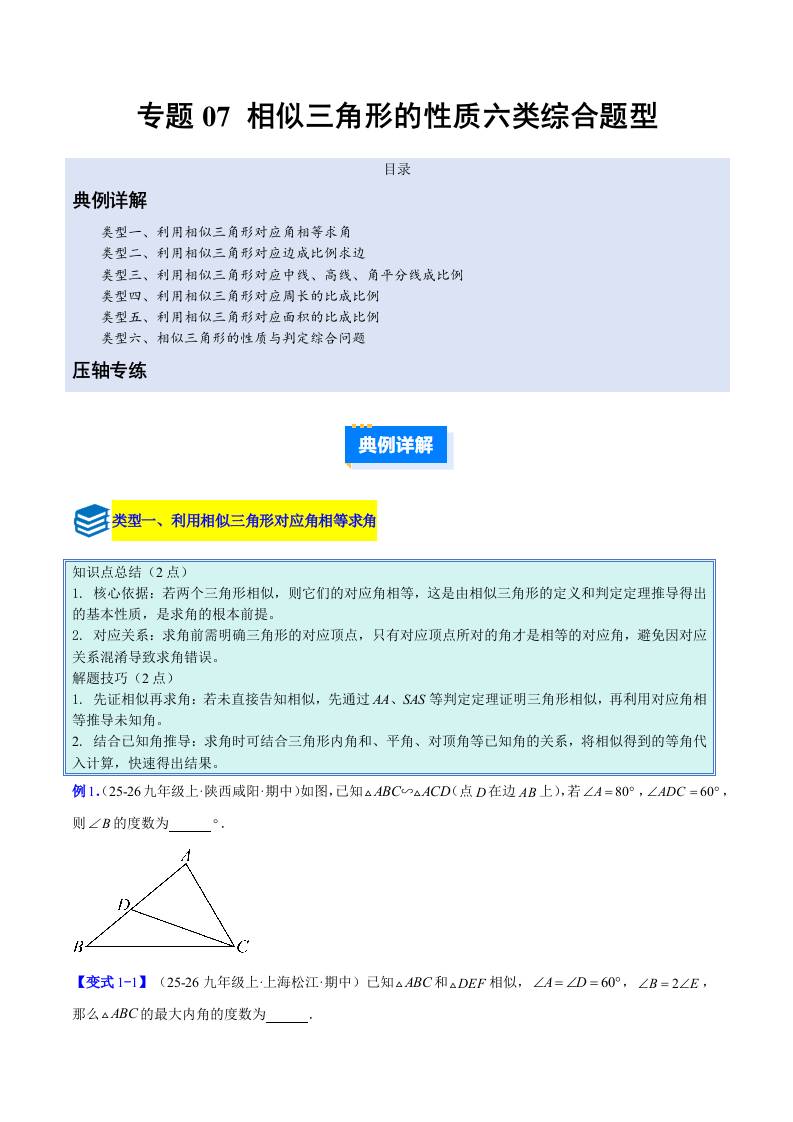 专题07 相似三角形的性质六类综合题型(压轴题专项训练)(原卷版)