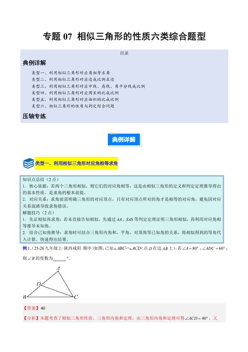 专题07 相似三角形的性质六类综合题型(压轴题专项训练)(解析版)