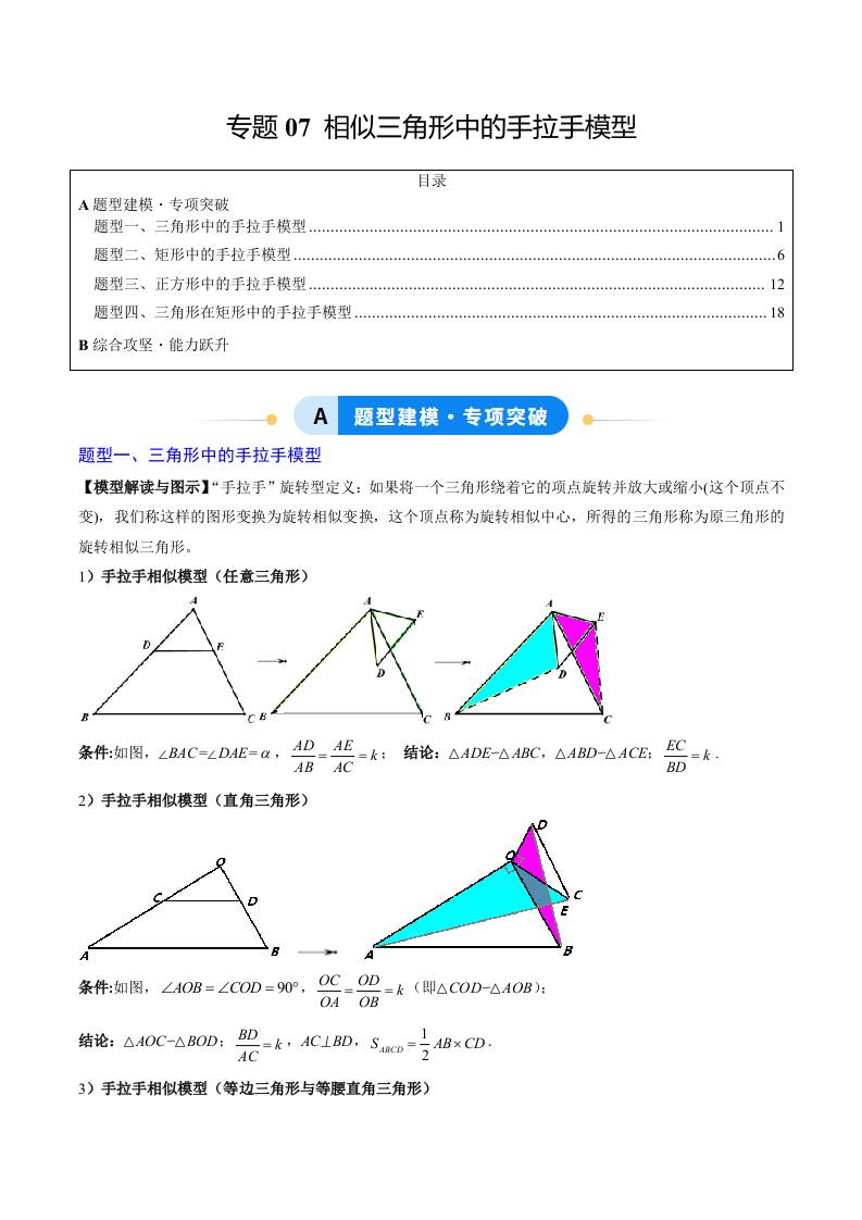 专题07 相似三角形中的手拉手模型(4大题型)(专项训练)(学生版)