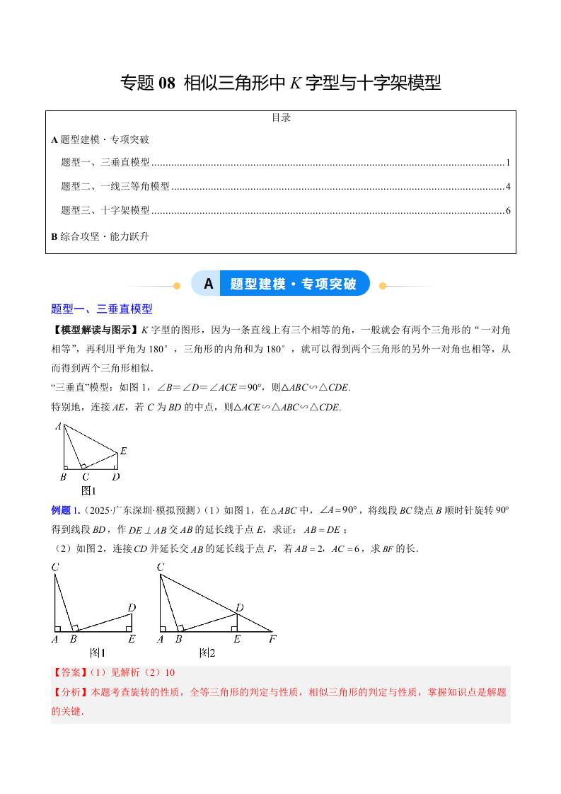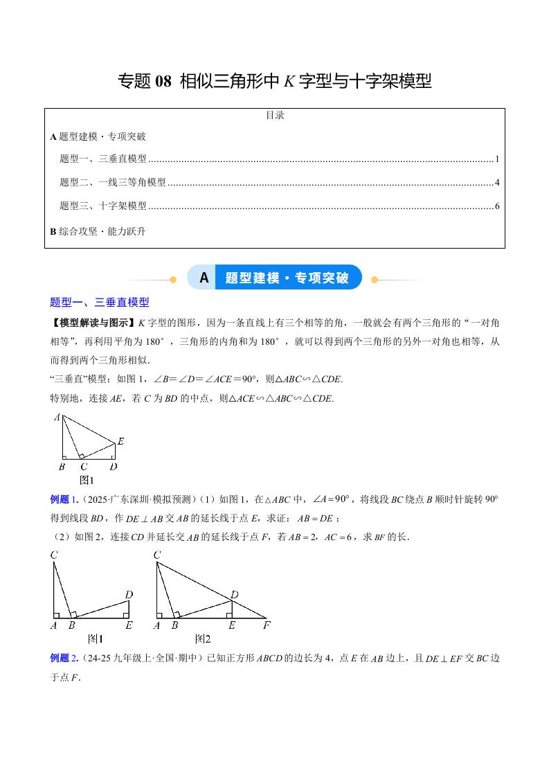 专题08 相似三角形中K字型与十字架模型(3大题型)(专项训练)(学生版)