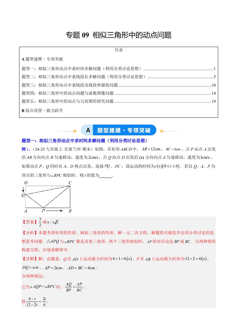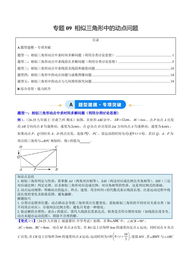 专题09 相似三角形中的动点问题(5大题型)(专项训练)(学生版)
