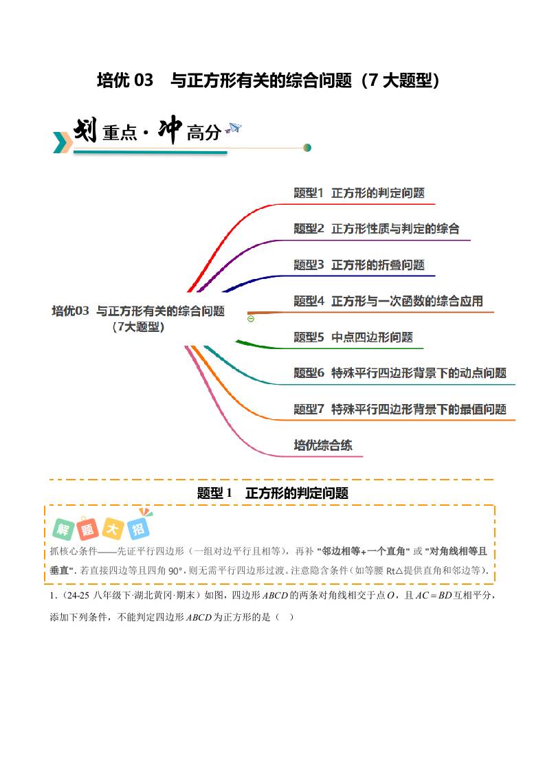 培优03 与正方形有关的综合问题(7大题型)(北师大)(原卷版)