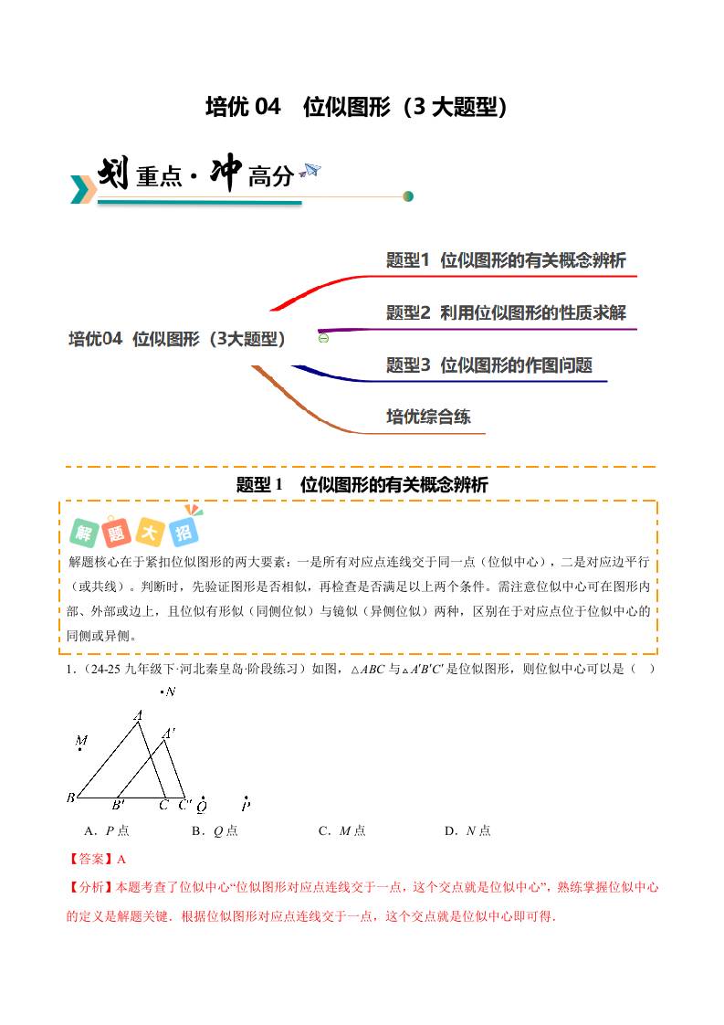 培优04 位似图形(3大题型)(北师大2012)(解析版)