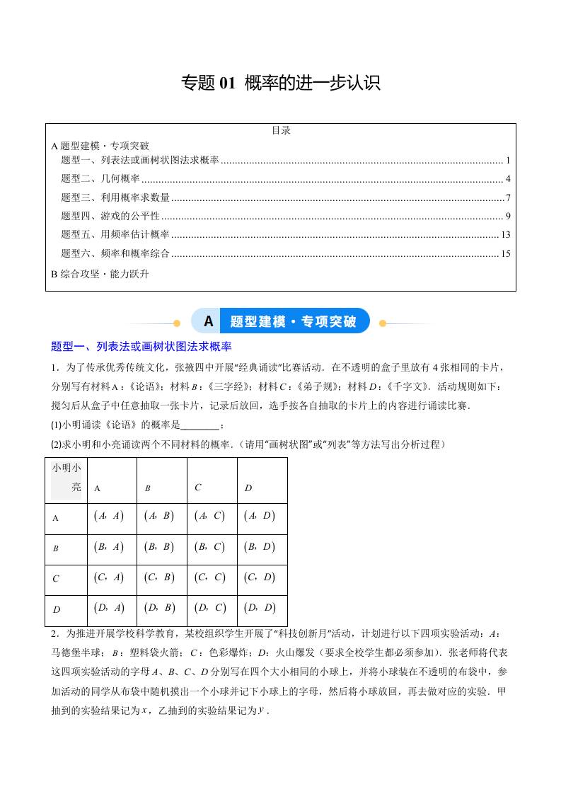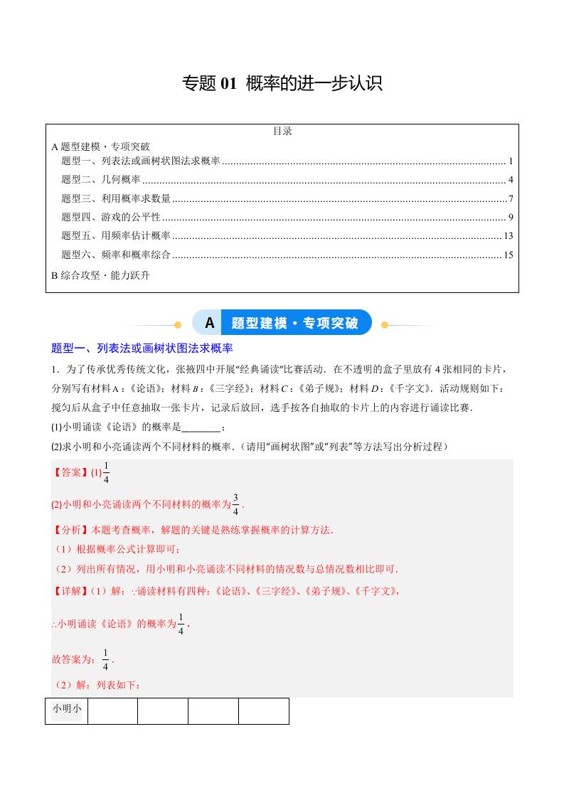 专题01 概率的进一步认识(专项训练)(学生版)