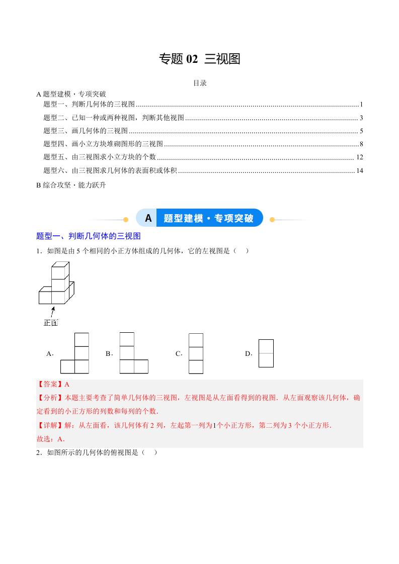 专题02 三视图(6大题型)(专项训练)(教师版)