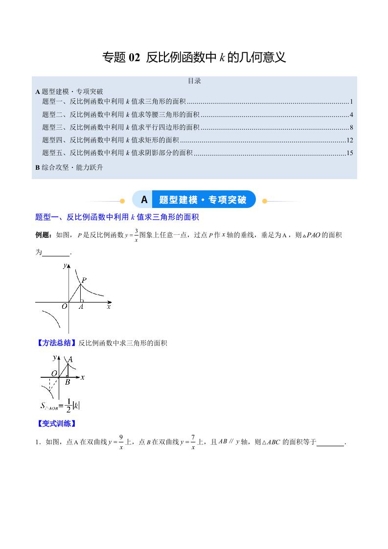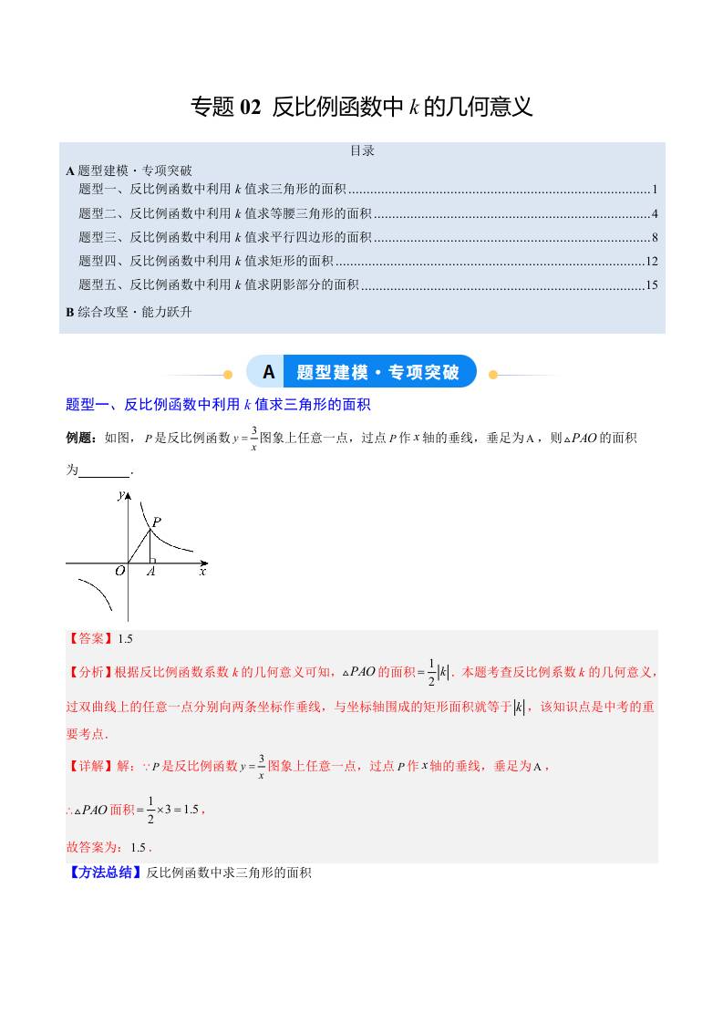 专题02 反比例函数中k的几何意义(5大题型)(专项训练)(学生版)