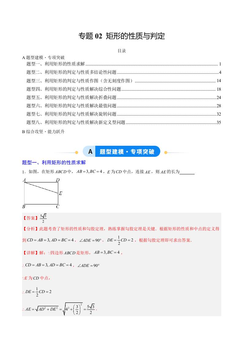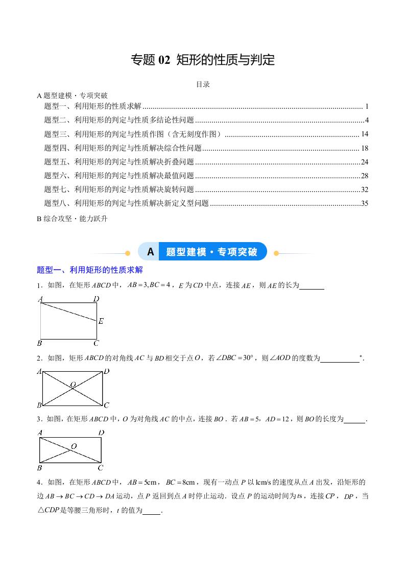 专题02 矩形的性质与判定(专项训练)(学生版)