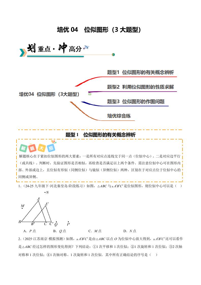 培优04 位似图形(3大题型)(北师大2012)(原卷版)