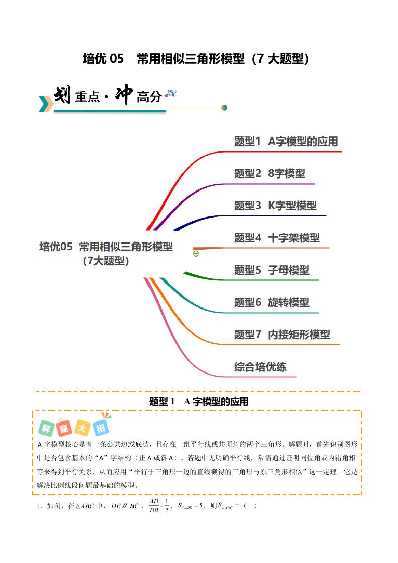 培优05 常用相似三角形模型(北师大2012)(7大题型)(原卷版)