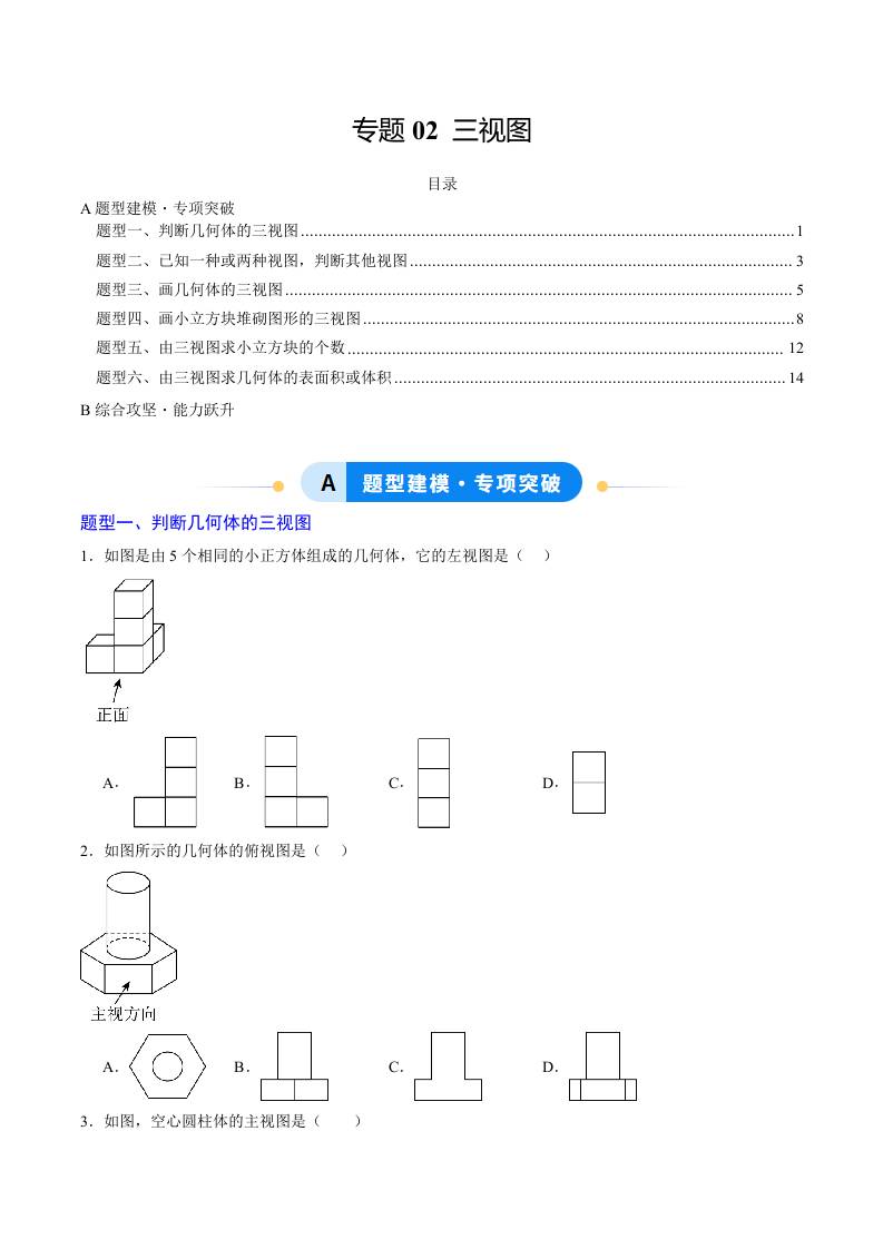 专题02 三视图(6大题型)(专项训练)(学生版)