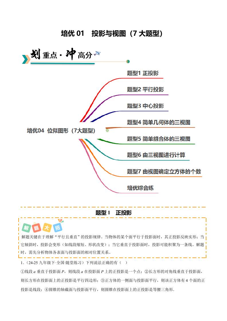 培优01 投影与视图(7大题型)(北师大2012)(原卷版)