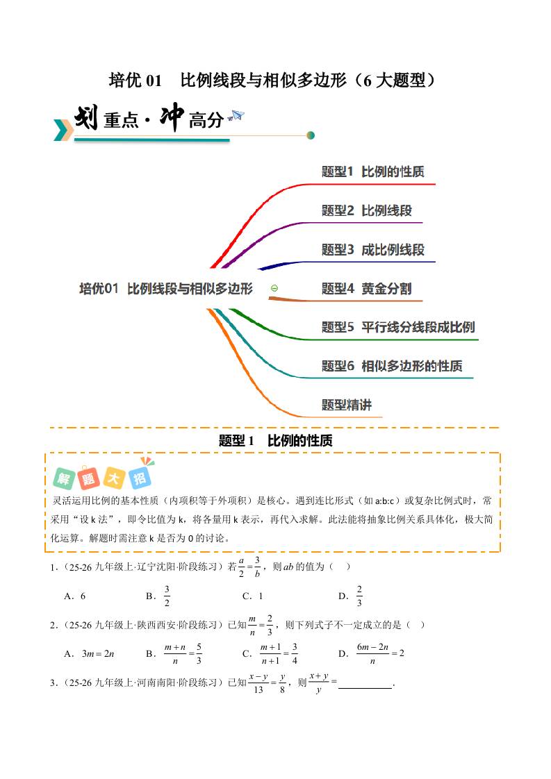 培优01 比例线段与相似多边形(6大题型)(北师大2012)(原卷版)