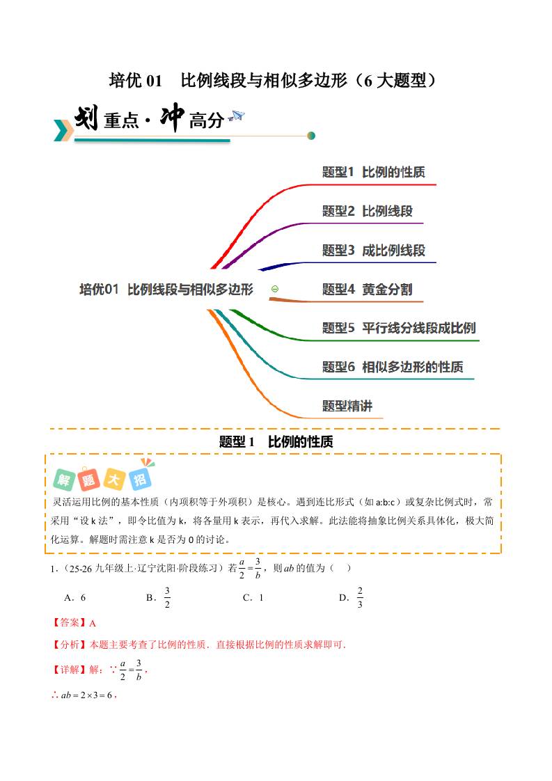 培优01 比例线段与相似多边形(6大题型)(北师大2012)(解析版)