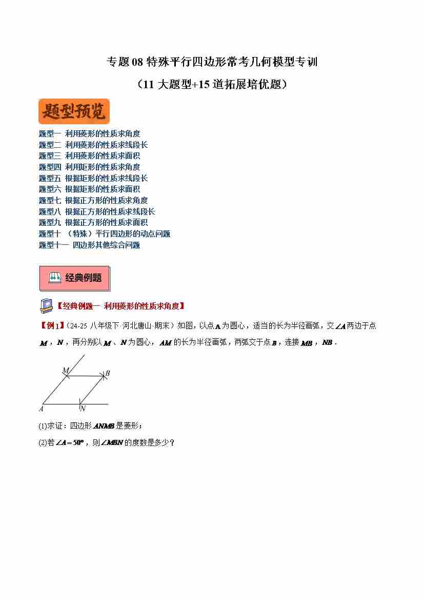 专题08特殊平行四边形常考几何模型专训(11大题型15道拓展培优题)(学生版)
