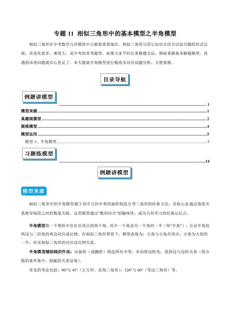 专题11 相似三角形中的基本模型之半角模型(几何模型讲义)(学生版)