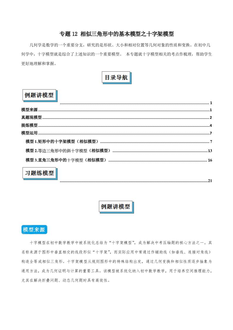 专题12 相似三角形中的基本模型之十字架模型(几何模型讲义)(学生版)