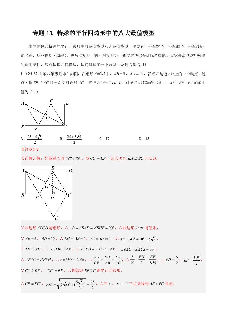 专题13 特殊的平行四边形中的八大最值模型(几何模型讲义)(教师版)