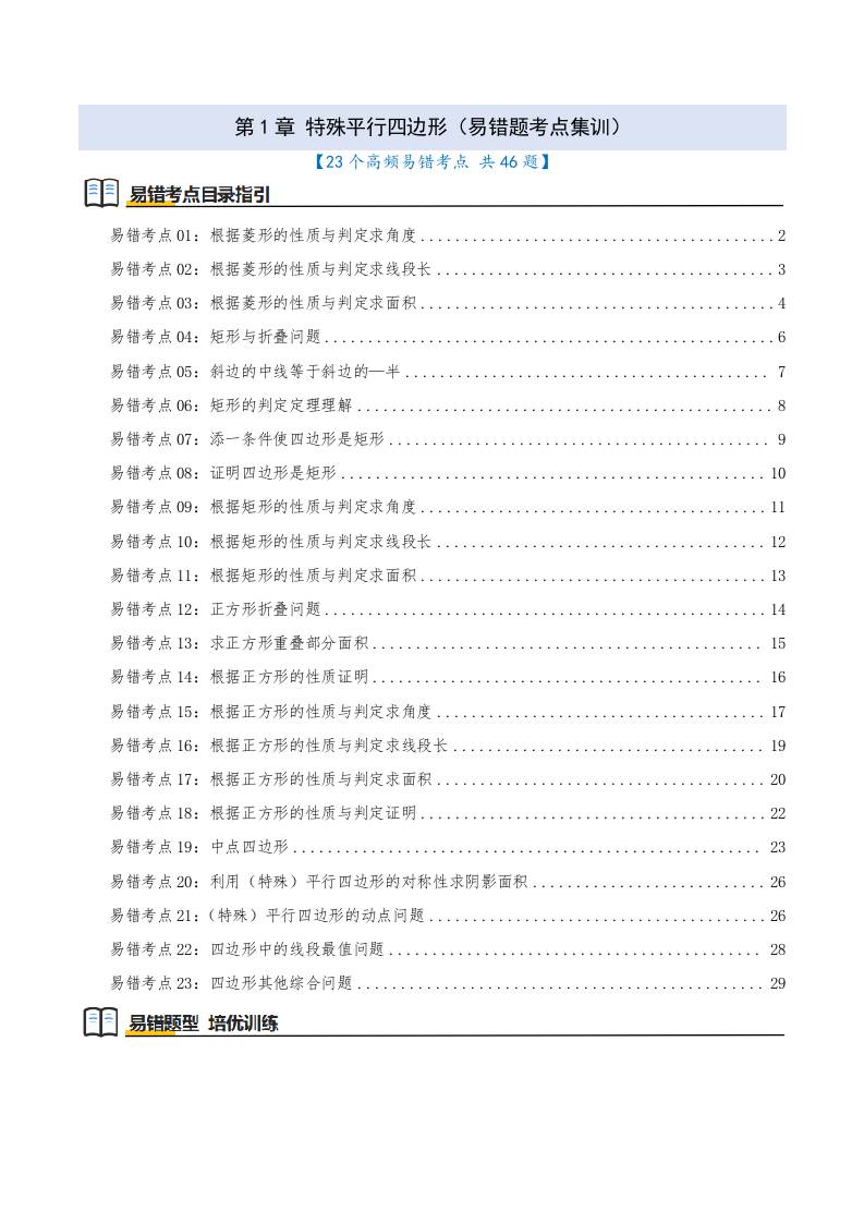 第1章 特殊平行四边形(23个高频易错考点训练 共46题)原卷版