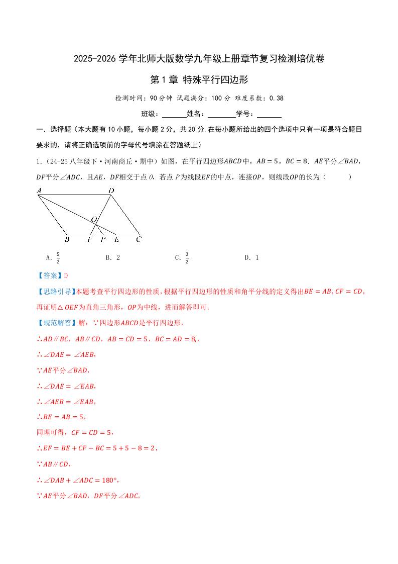 第1章 特殊平行四边形(章节复习检测培优卷)解析版