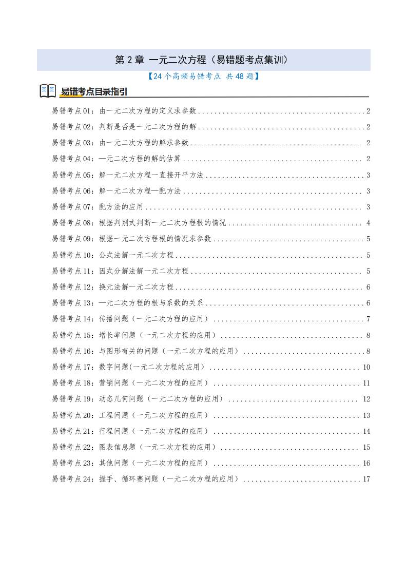第2章 一元二次方程(24个高频易错考点训练 共48题)原卷版
