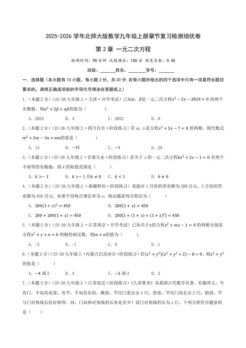 第2章 一元二次方程(章节复习检测培优卷)原卷版