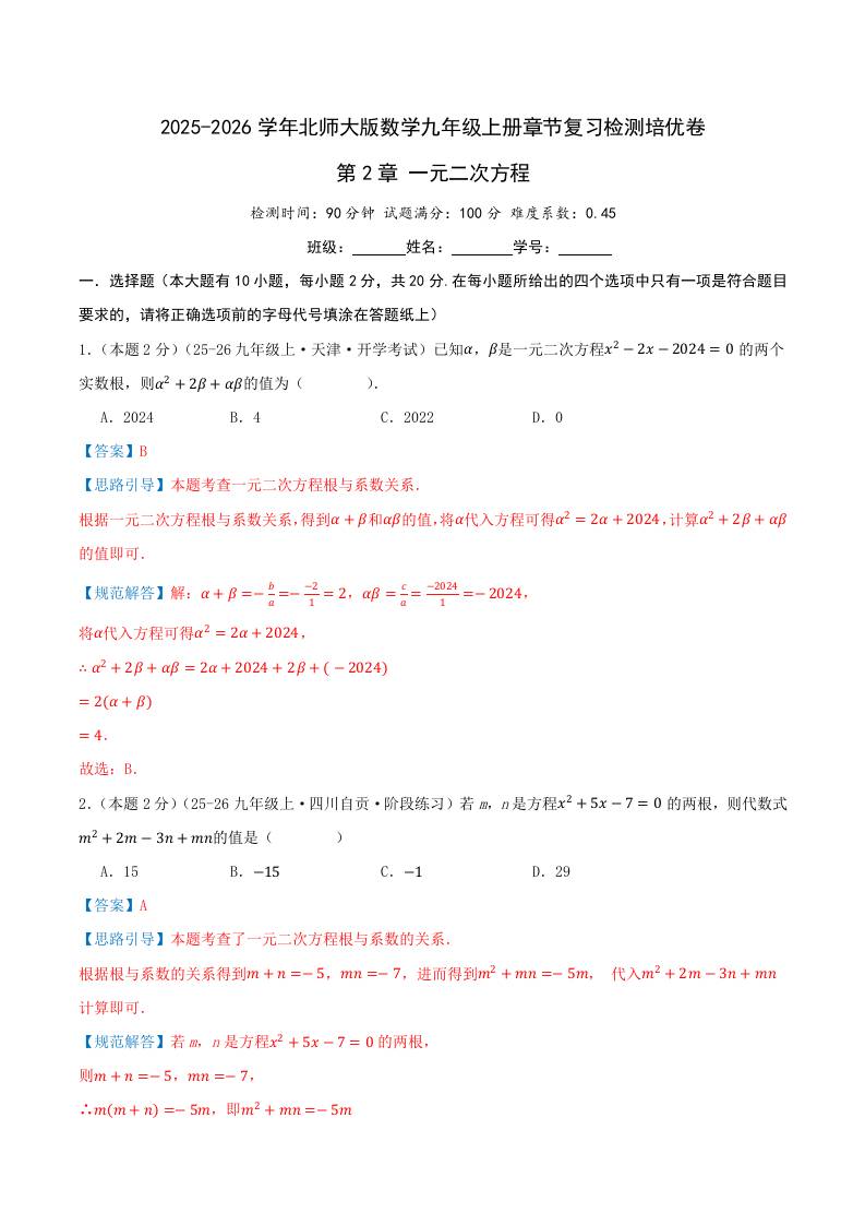 第2章 一元二次方程(章节复习检测培优卷)解析版