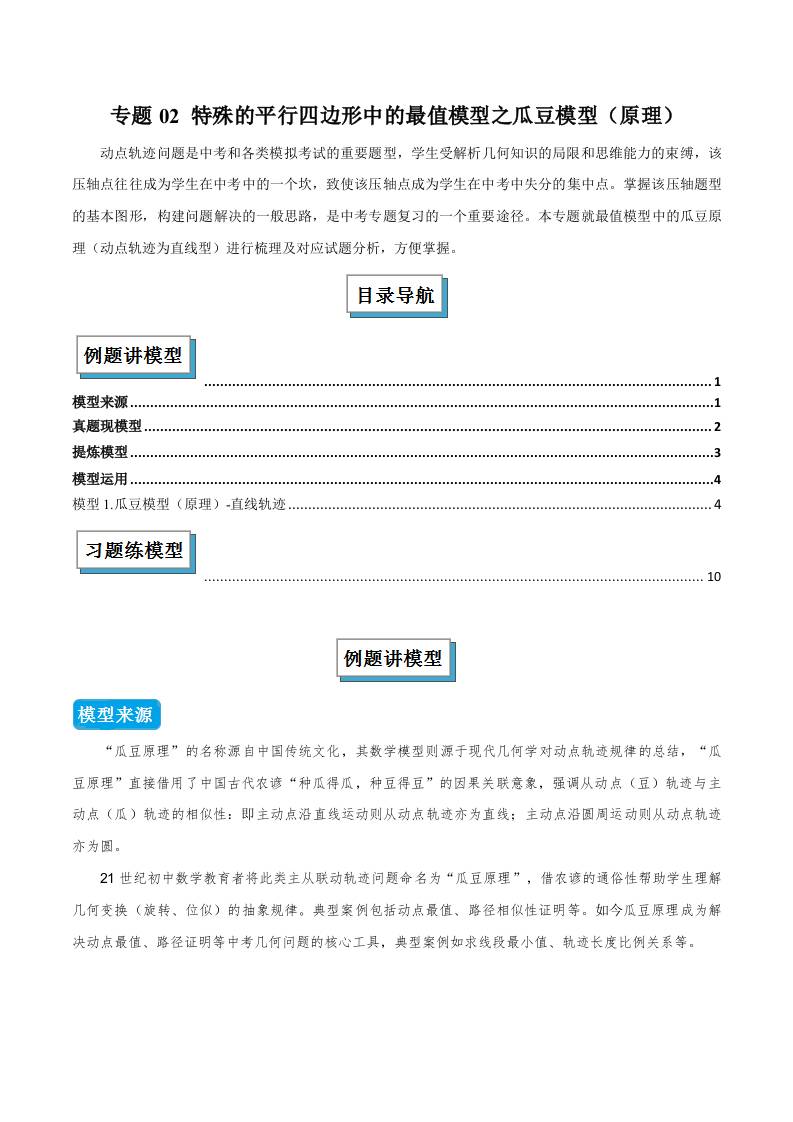 专题02 特殊的平行四边形中的最值模型之瓜豆模型(原理)(几何模型讲义)数学北师大版九年级上册(学生版)