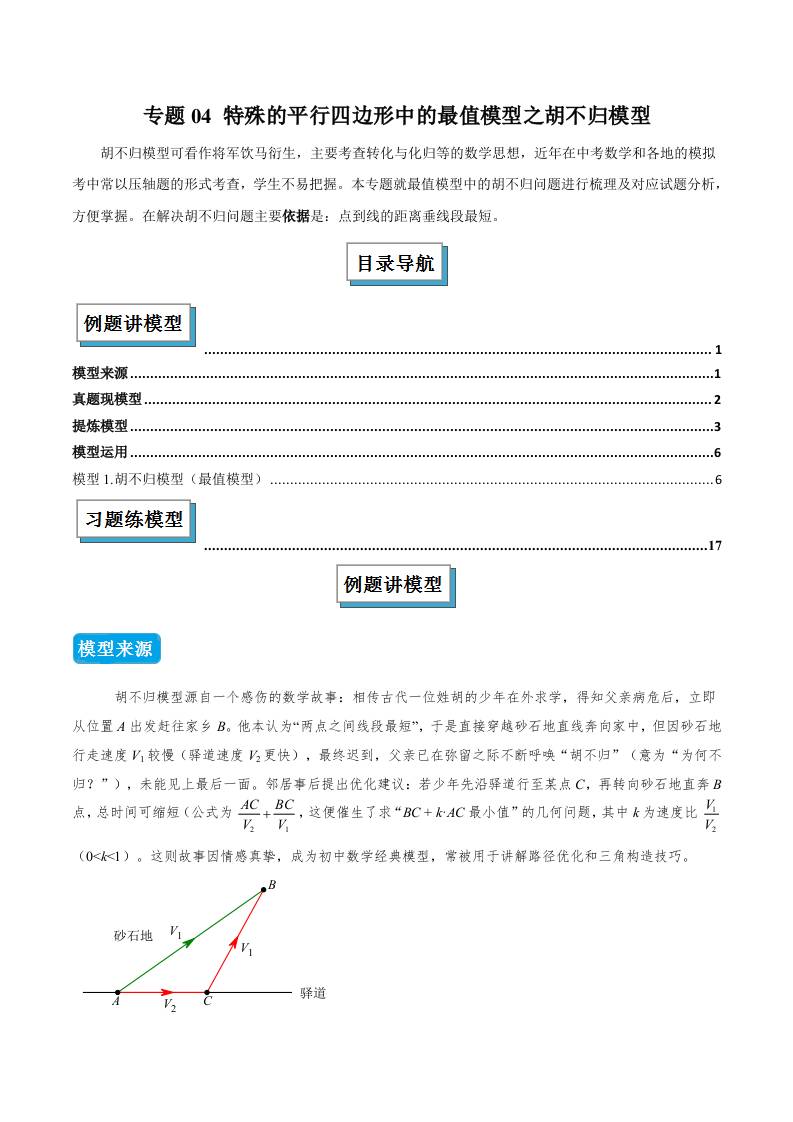 专题04 特殊的平行四边形中的最值模型之胡不归模型(几何模型讲义)(学生版)