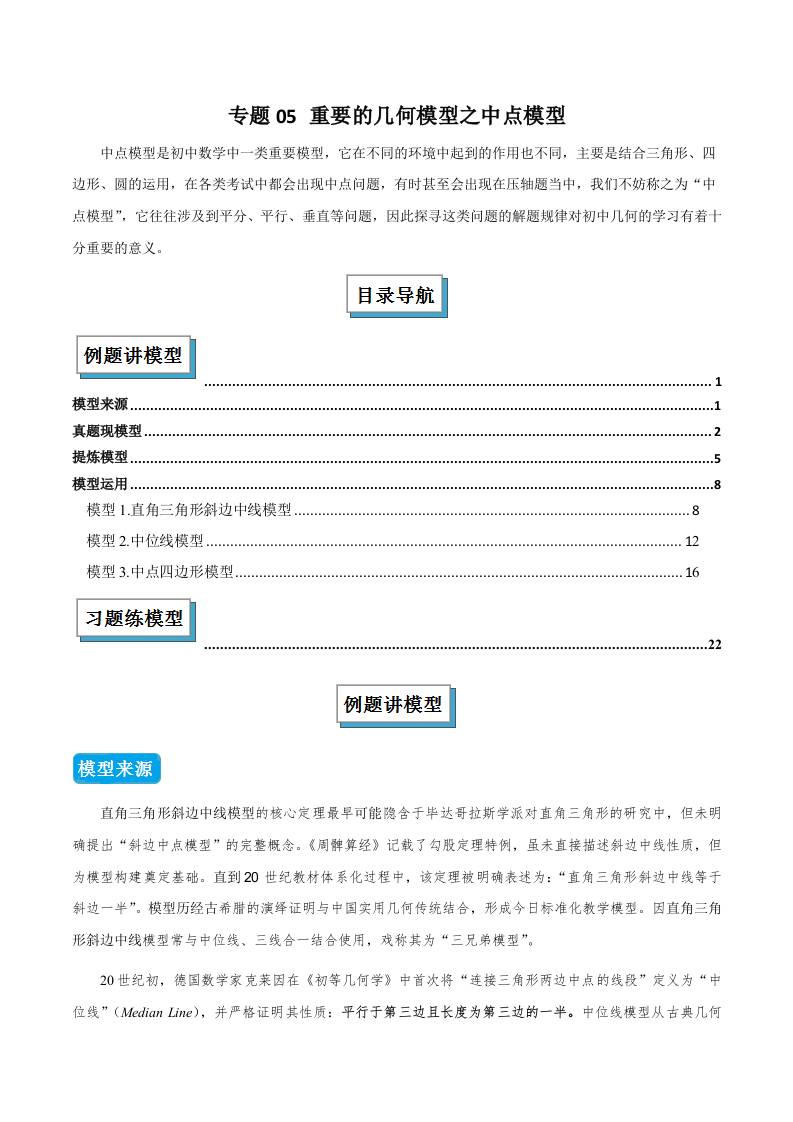 专题05 重要的几何模型之中点模型(几何模型讲义)(学生版)