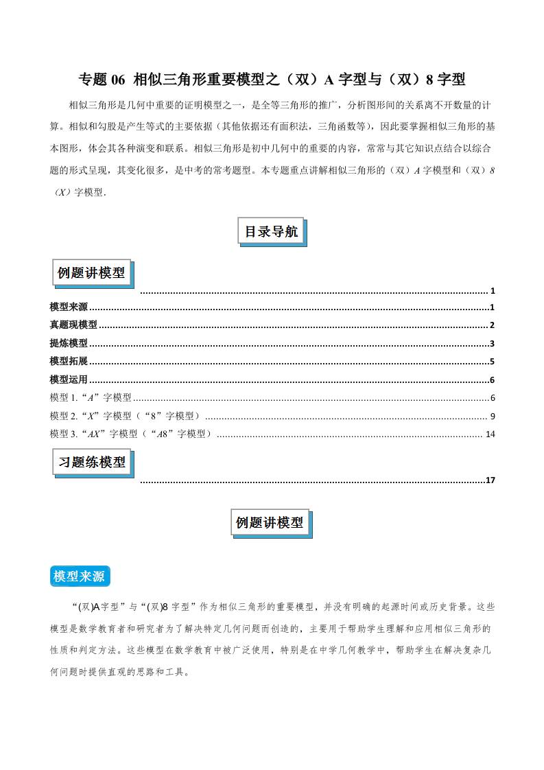 专题06 相似三角形重要模型之(双)A字型与(双)8字型(几何模型讲义)(学生版)