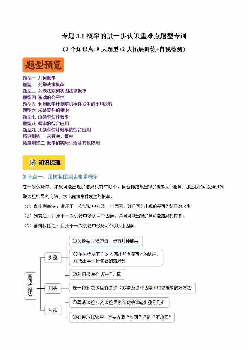 专题3.1概率的进一步认识重难点题型专训(3个知识点9大题型2大拓展训练自我检测)(学生版)