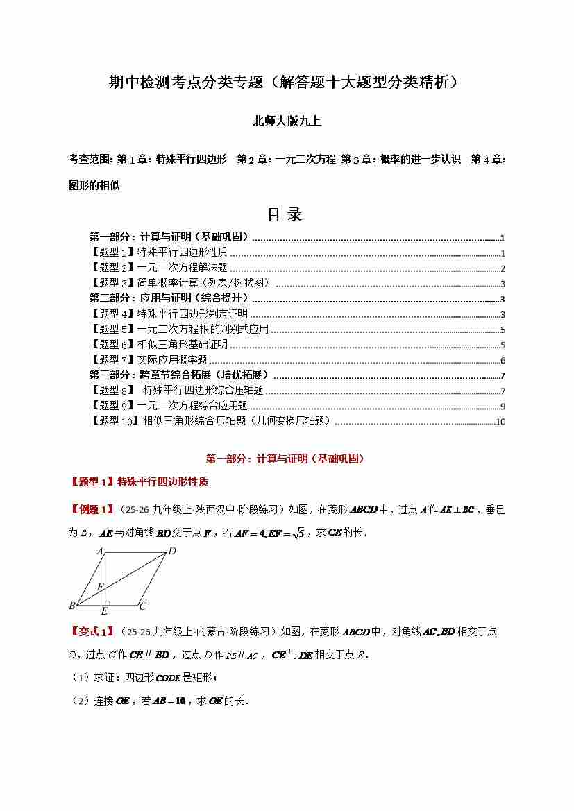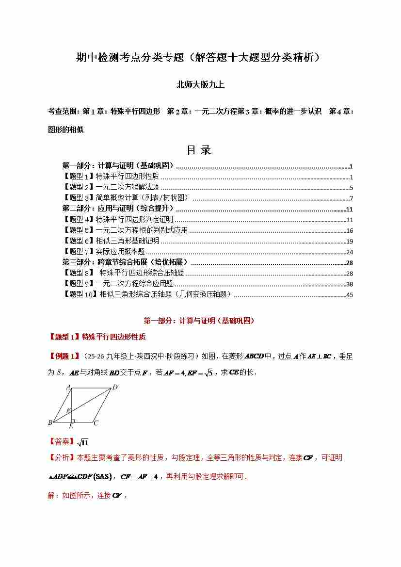 期中检测考点分类专题(解答题十大题型分类精析)(北师大版 )(学生版)