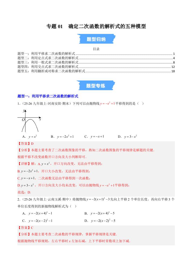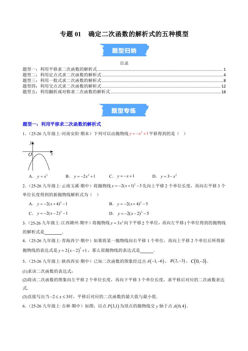 专题01 确定二次函数的解析式五种模型(高效培优专项训练)(原卷版)
