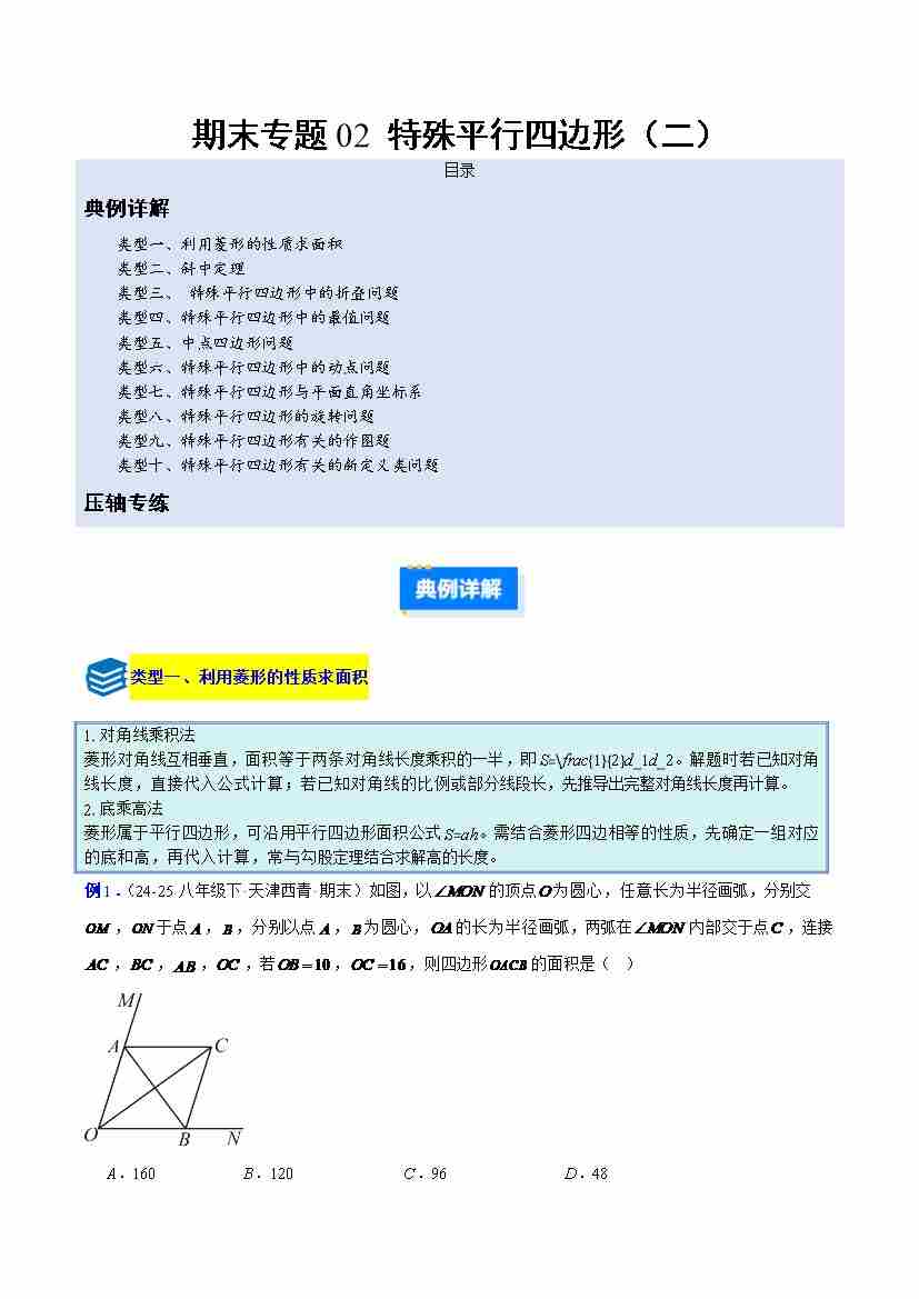 期末专题02 特殊平行四边形(二)的十五类综合题型(压轴题专项训练)(原卷版)