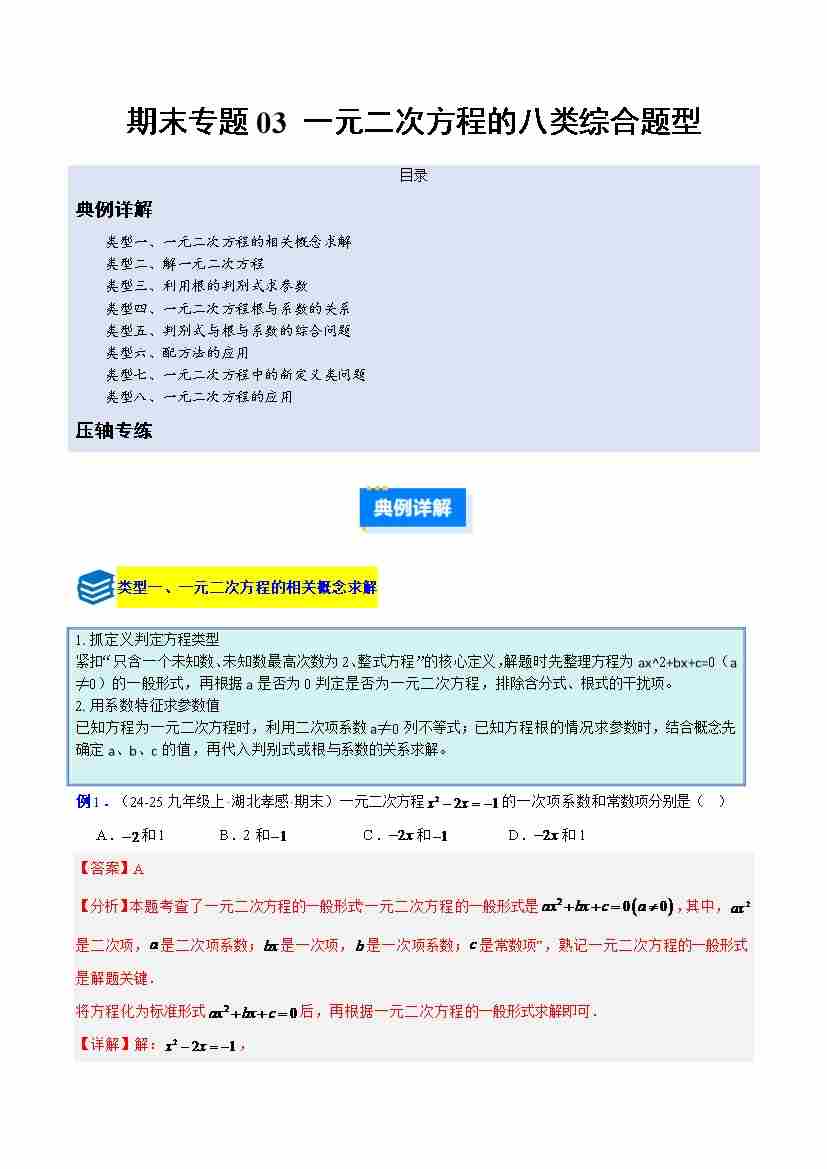 期末专题03 一元二次方程的八类综合题型(压轴题专项训练)(解析版)